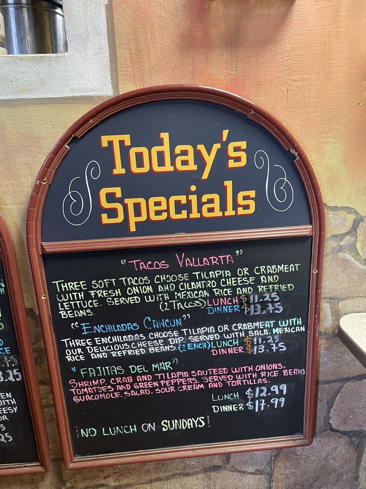 2 soft tacos with tilapia or crabmeat with fresh onion, cilantro, cheese and lettuce. Servd with Mexican rice and refried beans.